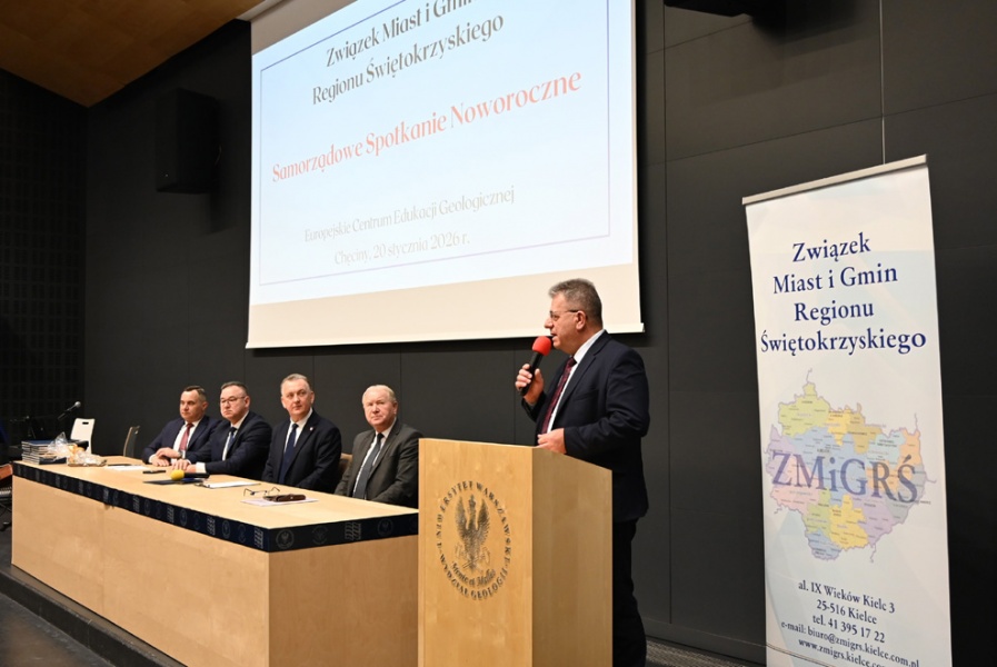 W Europejskim Centrum Edukacji Geologicznej w Chęcinach odbyło się samorządowe spotkanie noworoczne Związku Miast i Gmin Regionu Świętokrzyskiego. Wydarzenie stanowiło ważną okazję do podsumowania minionego roku, wymiany doświadczeń oraz rozmów na temat planów i wyzwań stojących przed jednostkami samorządu terytorialnego w nadchodzących miesiącach.